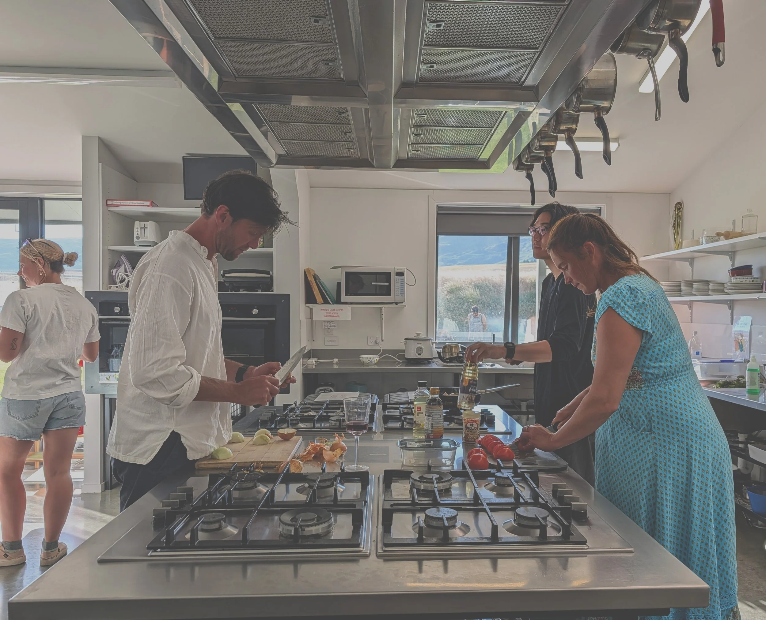 A spacious, equipped, commercial-grade kitchen designed for shared cooking, whether you’re preparing a simple meal or feeding a group.